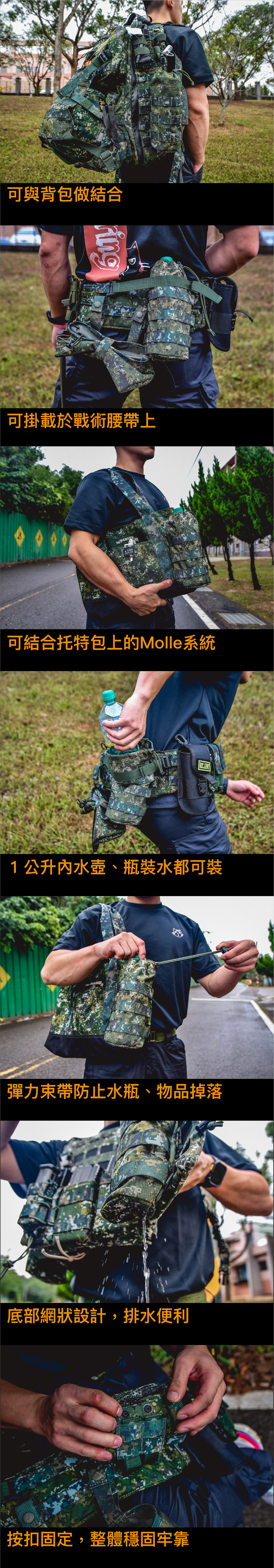 提高戰術補水靈活度,一公升水壺也能裝。