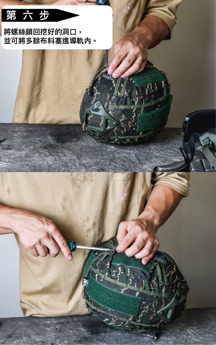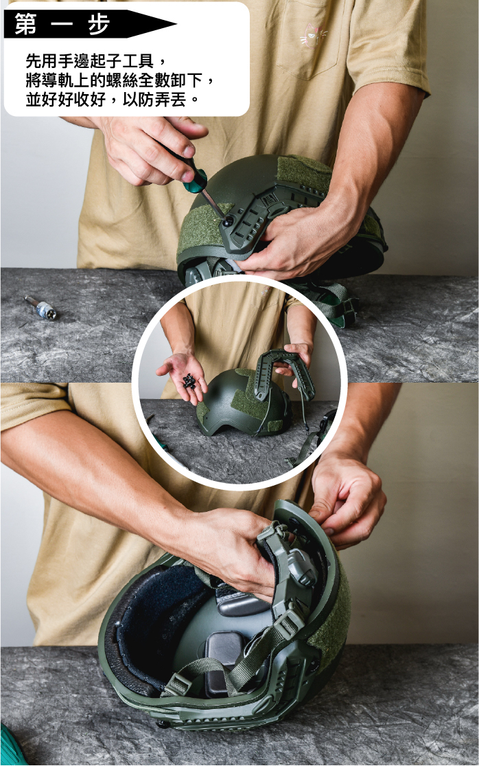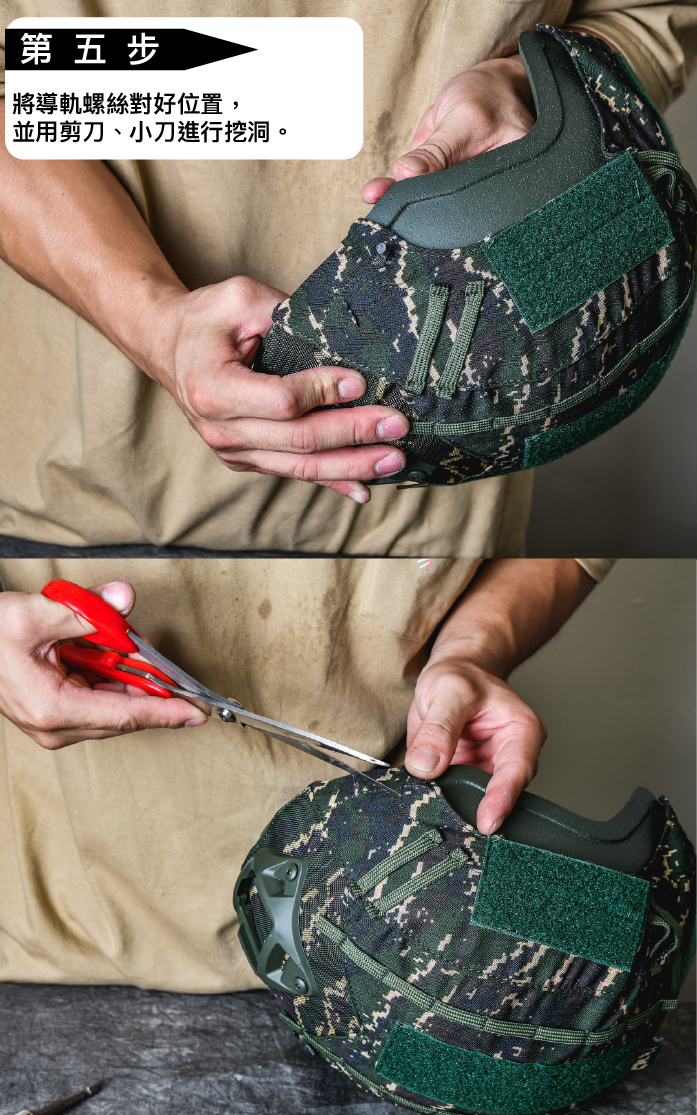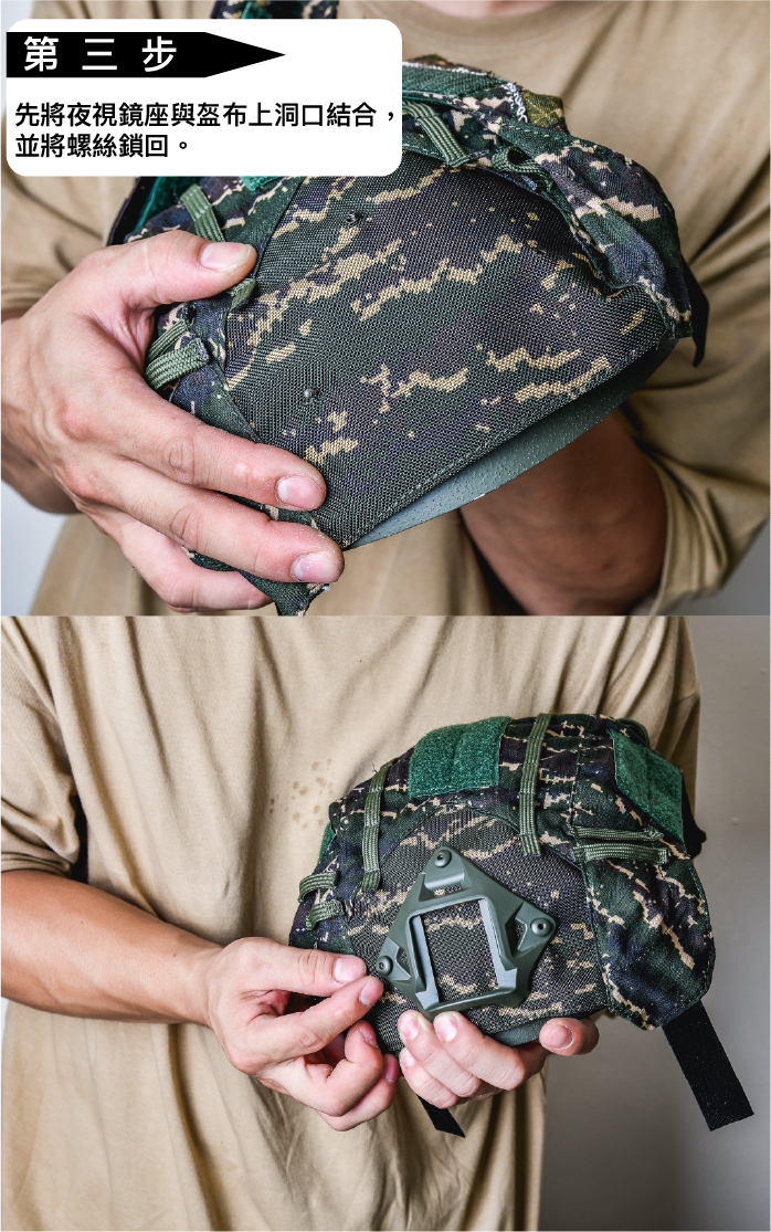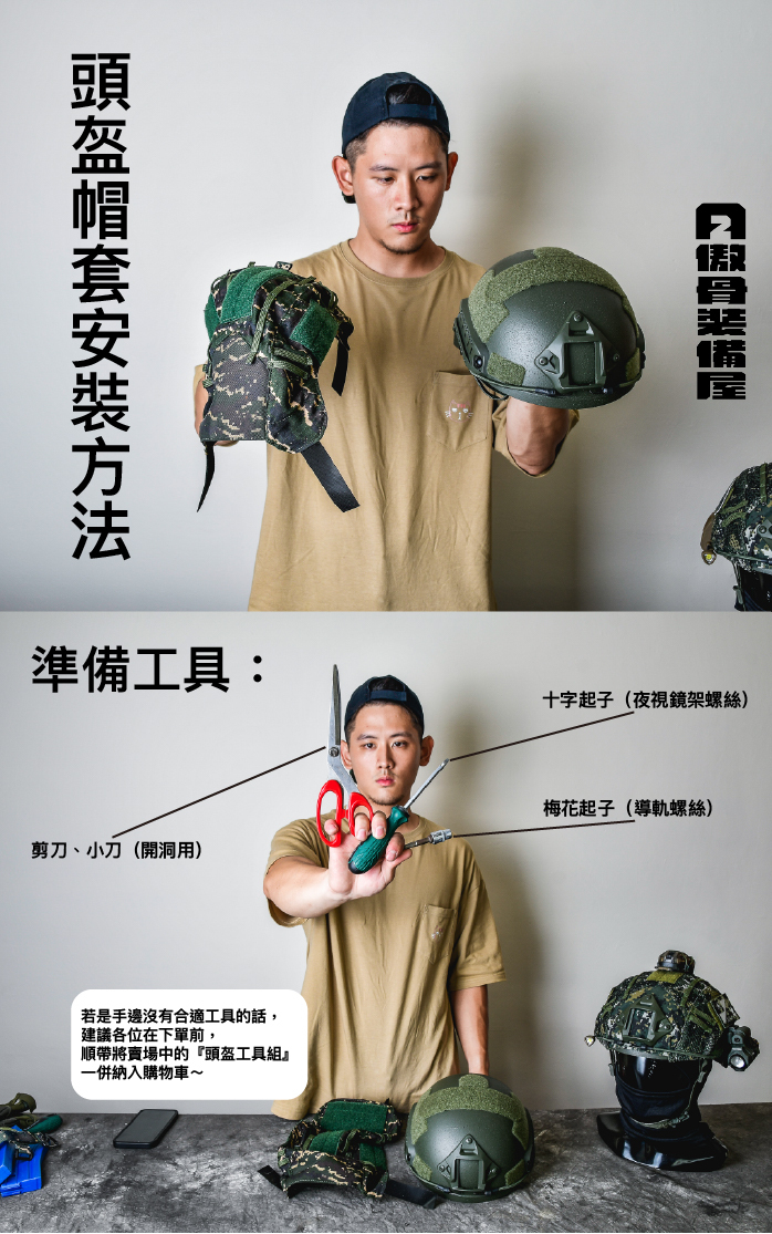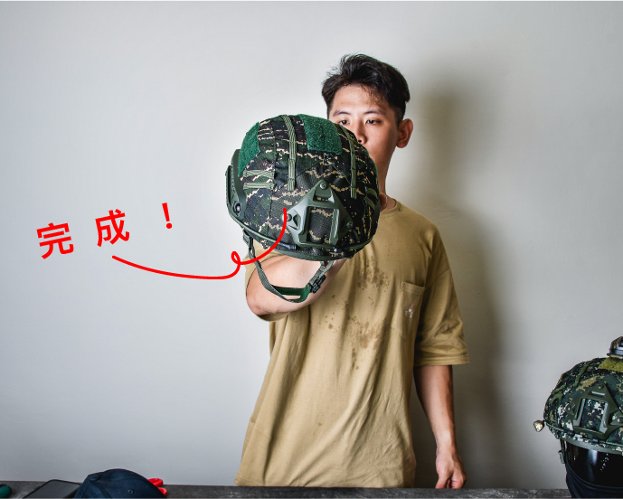 .頭盔上的母沾能外貼頭盔配重袋,個性臂章。