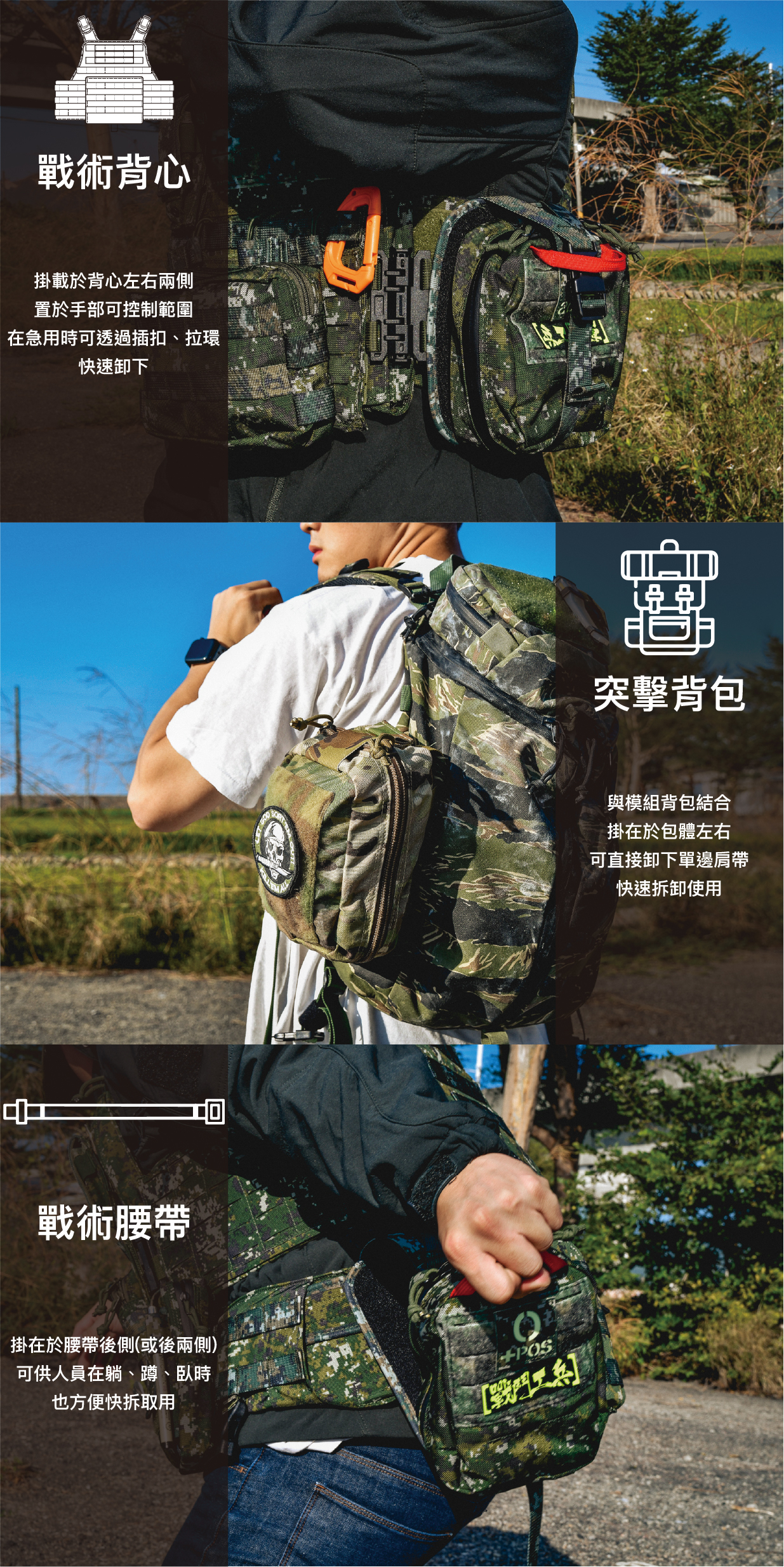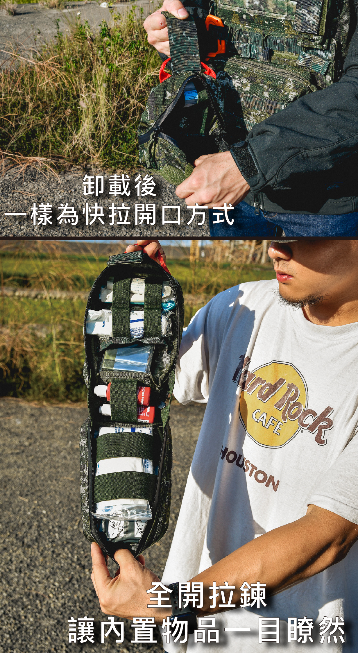 大容量設計可依 TCCC 配置全套醫療物資,無論軍事任務或日常備災,皆穩定可靠。