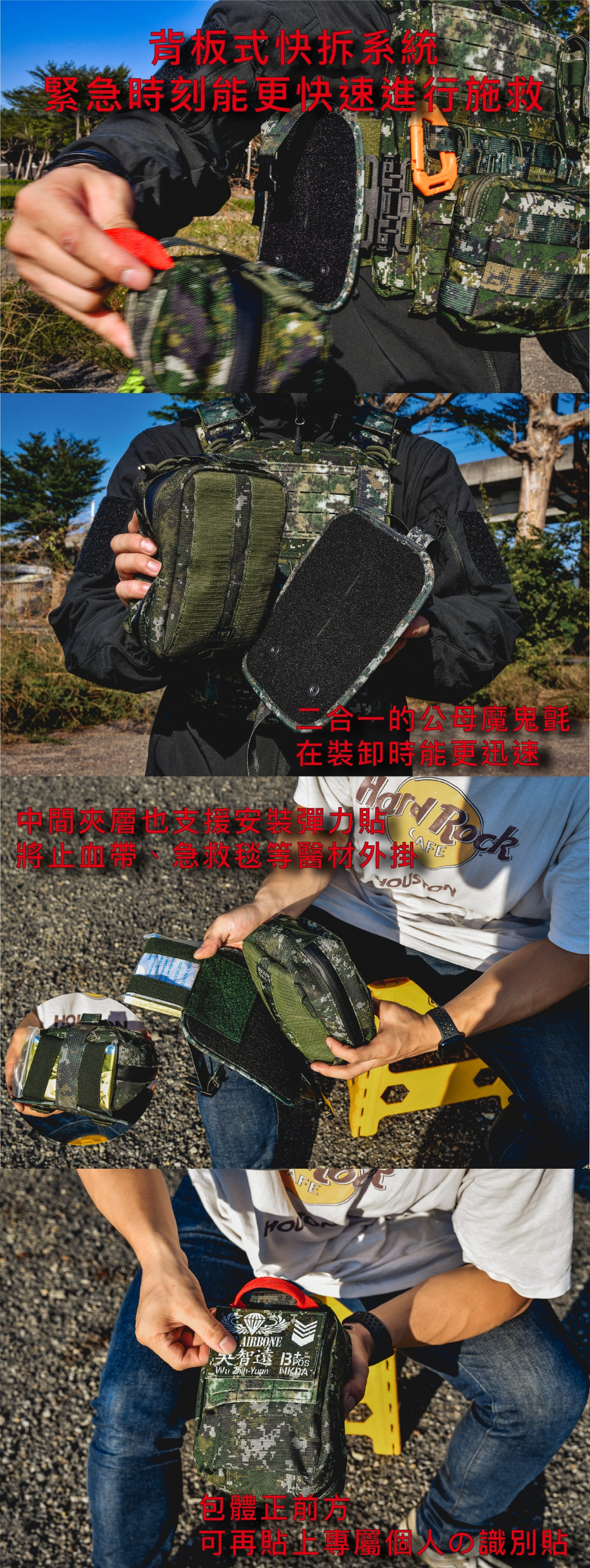 傲骨 JFAK 第二代快卸式醫療包,扣具+魔鬼氈雙重固定,瞬間拆卸取用;