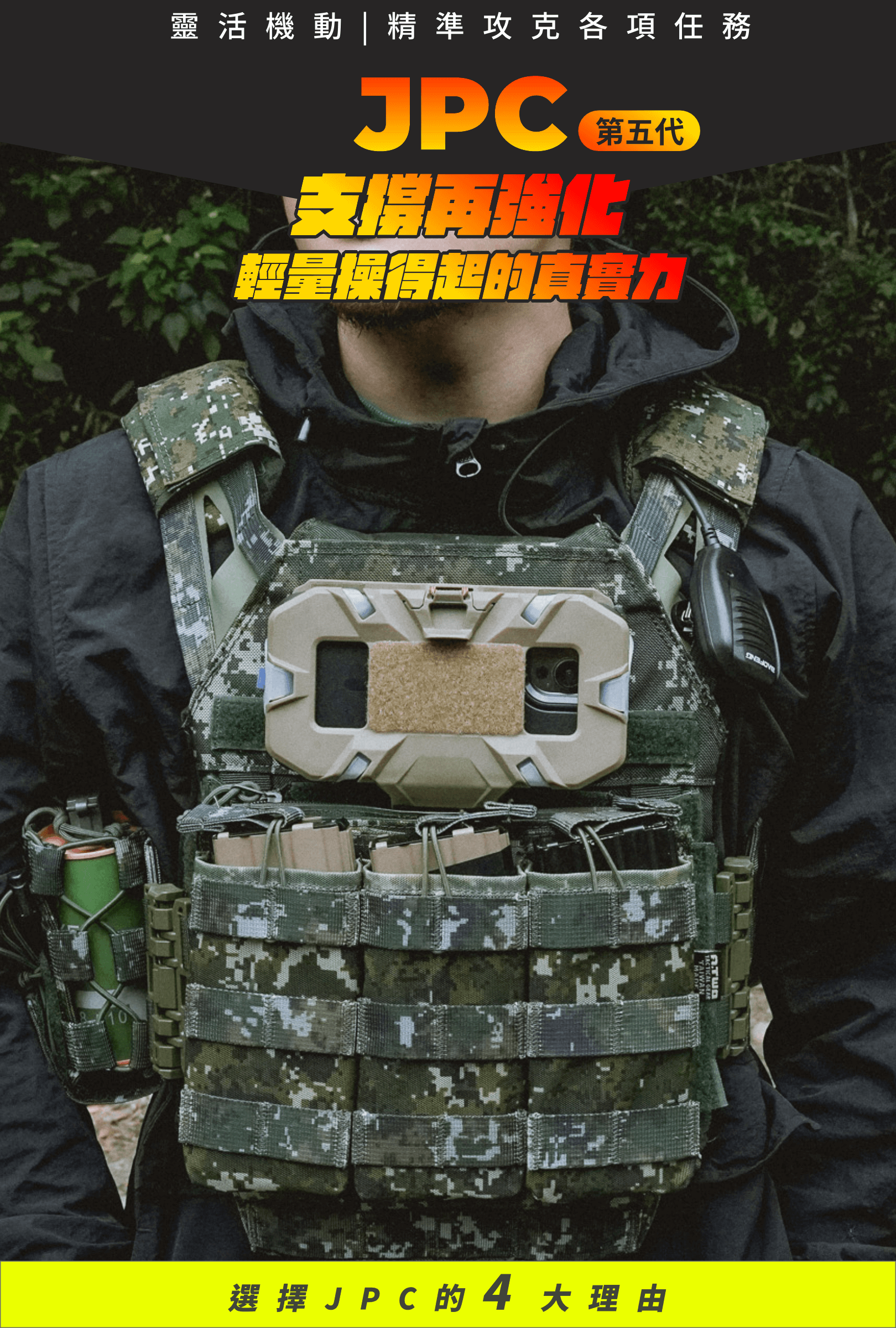 A-TWO JPC 是高貼合力的基礎,無論是跳傘、後背大型背包等高難度任務,都能進入通透模式,搞定任務