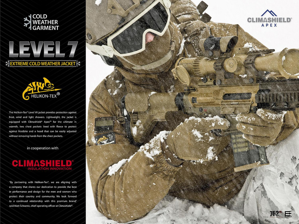L7防寒服: 美軍戰鬥服裝系統第七層的概念,適合極寒地區作戰任務。