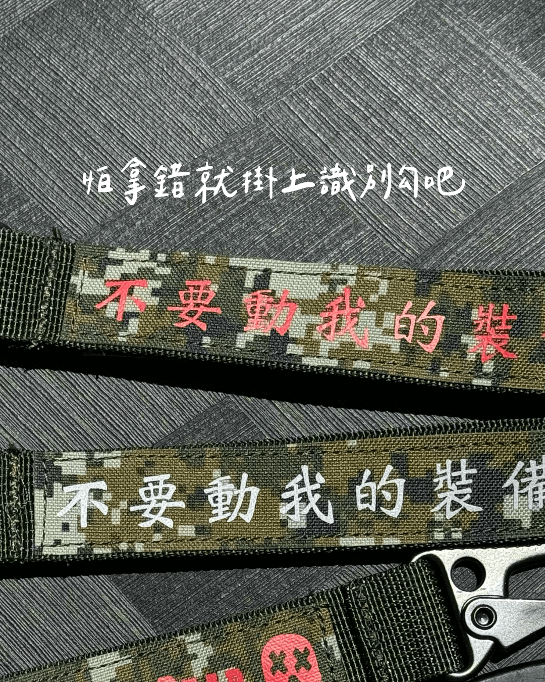 這款飄帶採用高質量耐用的材料製作,並且加入了潮流的鷹嘴勾設計,適用於各類戰術裝備。飄帶上印有醒目的「不要動我的裝備」字樣,提供額外的保護和辨識度。