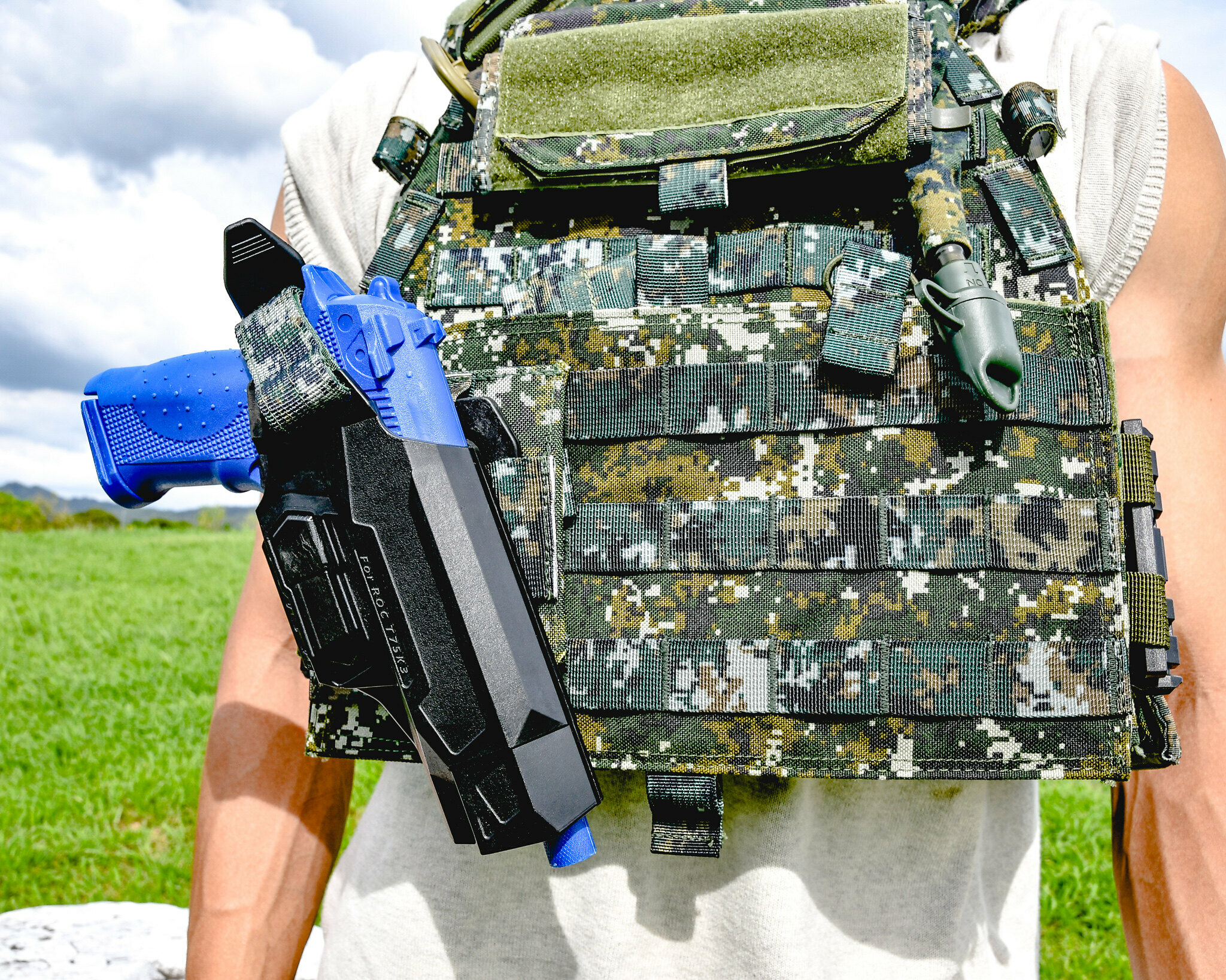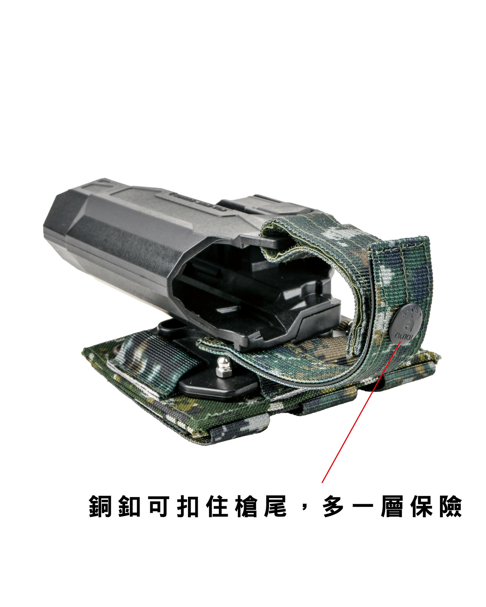 模組化尼龍底板(可與常見戰術平台相容)提供可靠固定與快速拆裝,在靶場、訓練或外出時都能以最自然的動作完成拔槍、回收。
