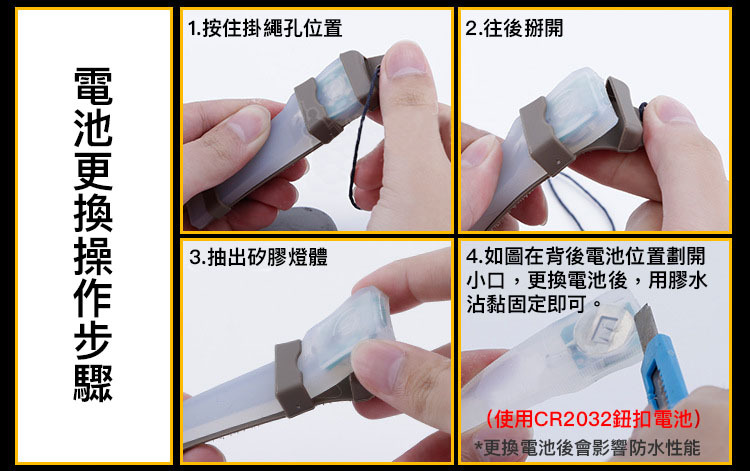 可貼手臂的信號燈,採用耐用防水材質與魔術沾設計,牢固舒適,適合夜跑、騎車及戶外活動。LED光源支持二段閃爍模式,