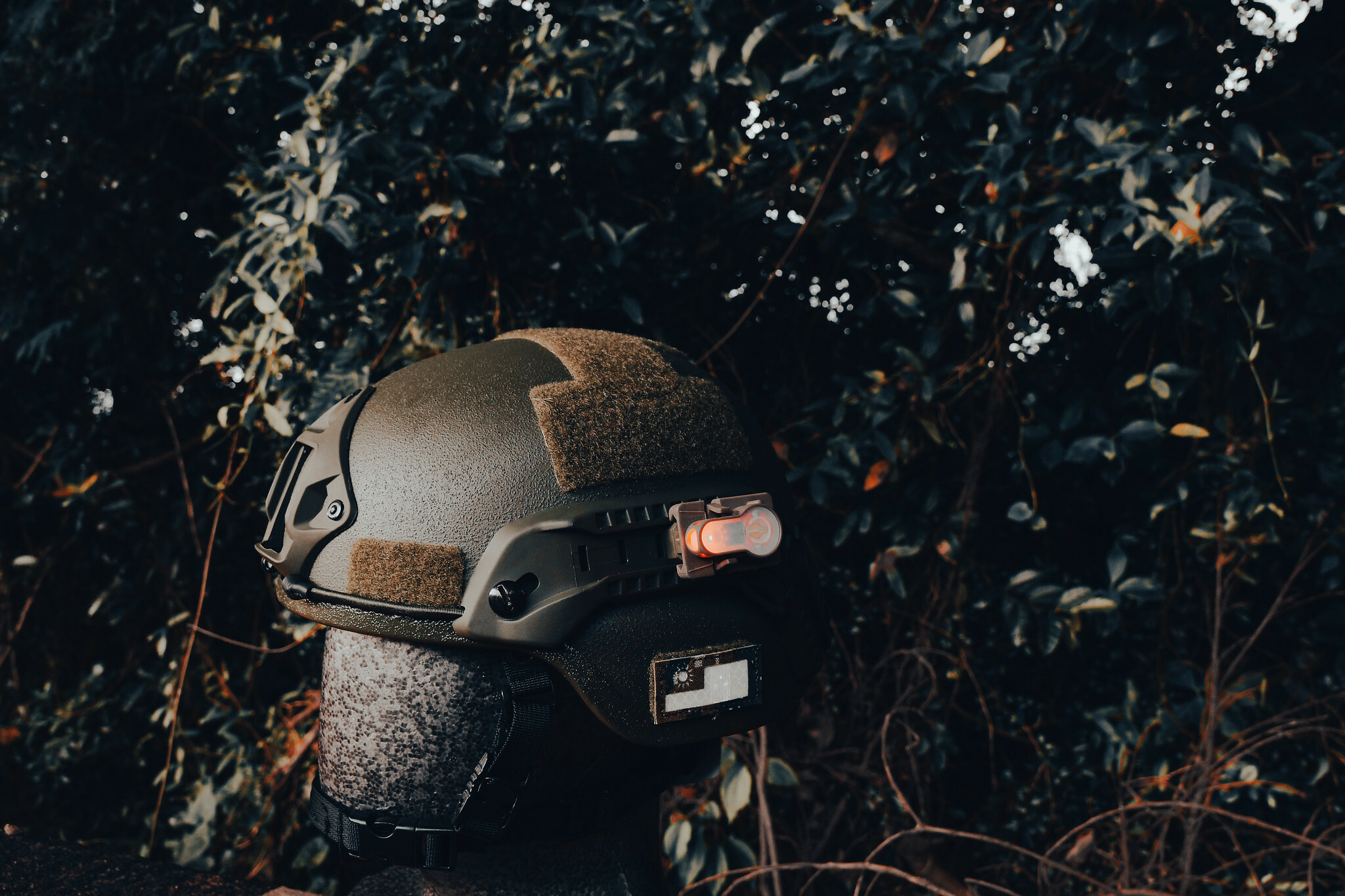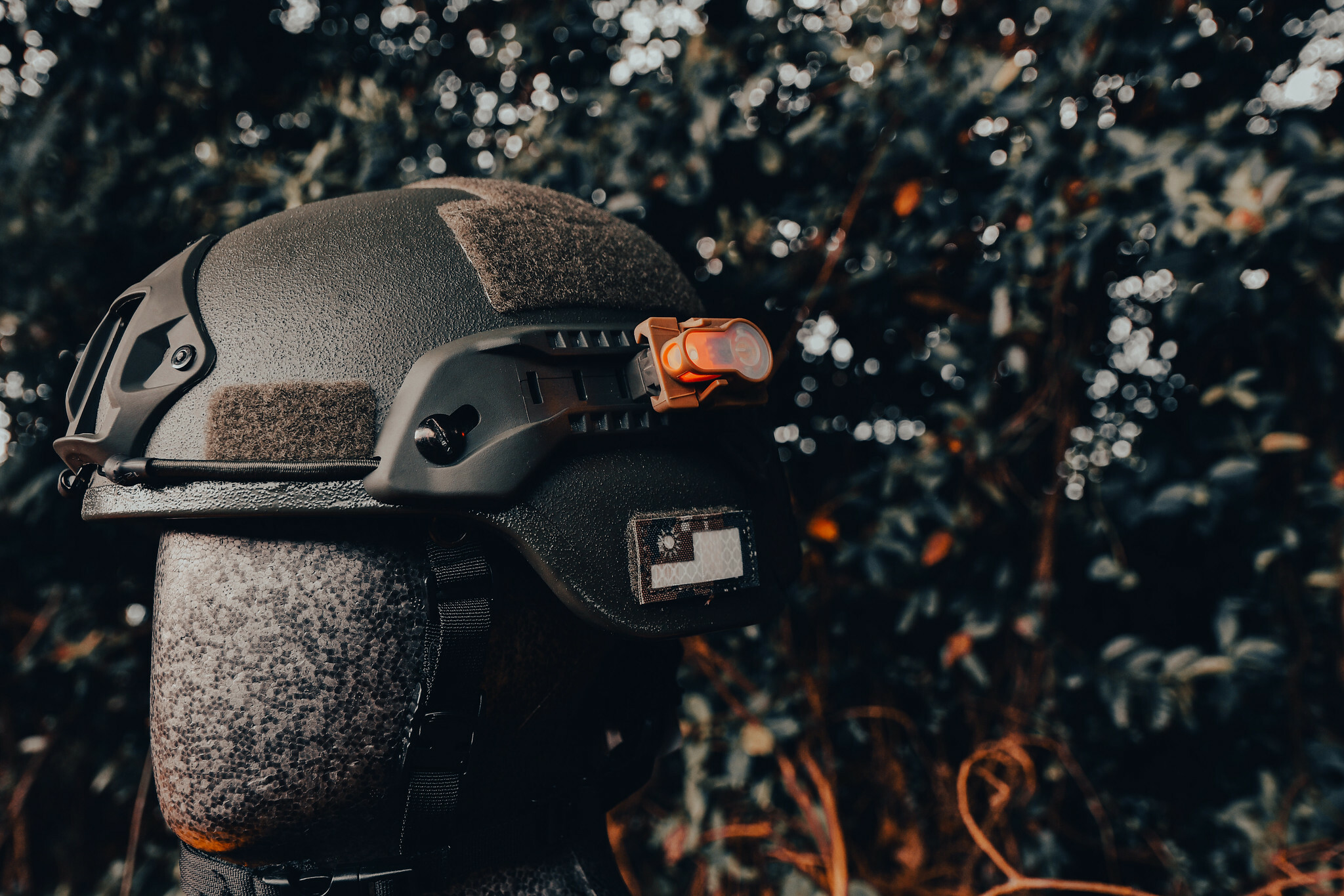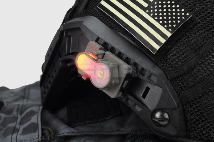 背面可和頭盔導軌結合, 可以安裝在頭盔側邊, 增加在夜晚的安全性