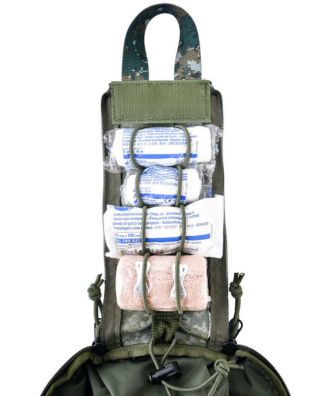 ・可固定個人裝備如止血帶、小刀或是其他小物至背包或是戰術背心。